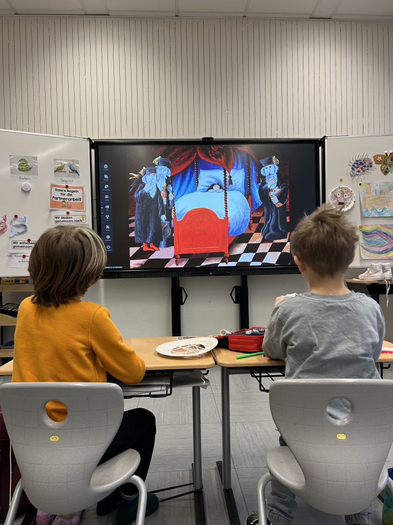 Herr Roeder hieß die Kinder in einer Videobotschaft herzlich willkommen. Danach sorgte die Klasse 1 mit einem fröhlichen Lied für gute Stimmung, bevor die Klasse 4 ihre guten Wünsche für den Schulstart übermittelte. Anschließend erlebten unsere neuen Schulanfängerinnen und Schulanfänger ihre erste Unterrichtsstunde.