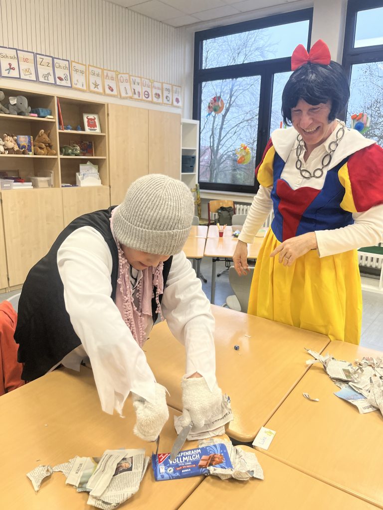Ausgeschmückt und begleitet wurde das Theaterstück von aufwendigen Kostümen sowie tollen Gesangs- und Tanzeinlagen. Die Zeit verflog schnell und so machten wir uns schon bald wieder auf den Rückweg zur Schule. In den Klassen hatten wir daraufhin noch Zeit für ein Frühstück und sprachen über unsere Erlebnisse im Theater. Hier ein paar Eindrücke aus unseren Klassen: