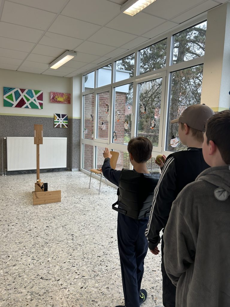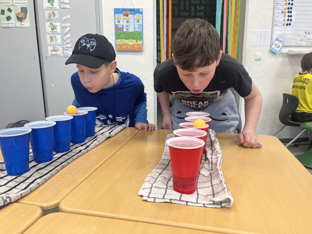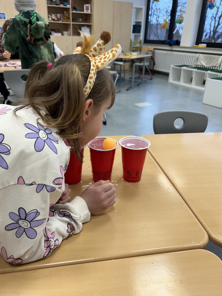 Neben dem Kellnerspiel gab es noch viele weitere lustige Stationen: Beim Sockenweitwurf zeigten die Kinder ihre Zielsicherheit, beim Eiswaffeltransport ging es darum, mit Geschick und Balance das Eis unfallfrei ans Ziel zu bringen. Das Luftballonspiel sorgte für viele Lacher, als die Kinder versuchten, ihren Ballon mit der Hand in der Luft zu halten und geschickt durch den Parcours zu steuern. Der Teppichfliesenlauf stellte die Laufkünste der Schülerinnen und Schüler auf die Probe.