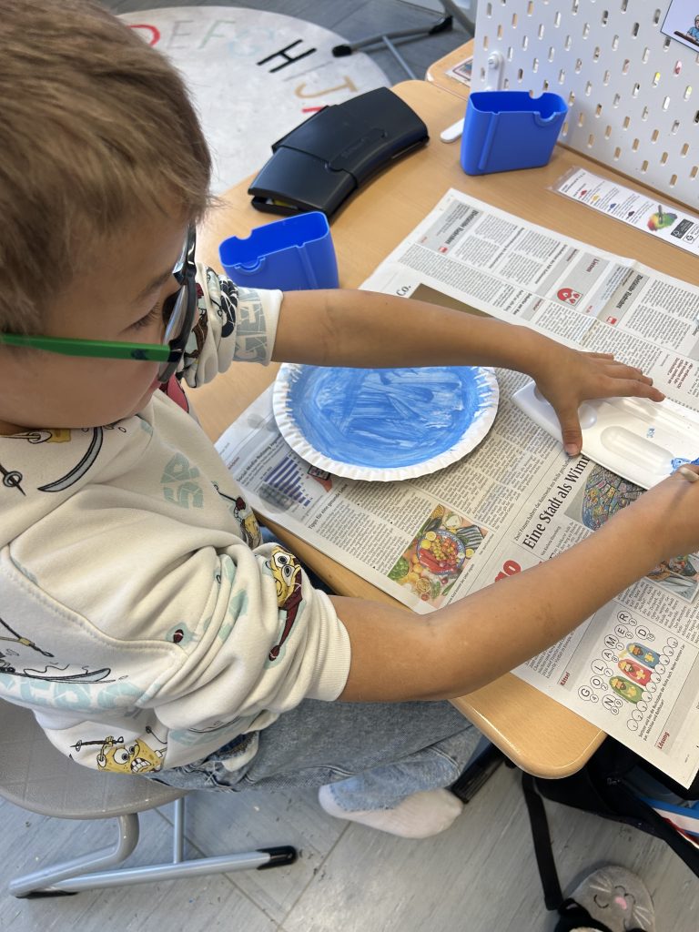 Im Anschluss wählte jedes Kind ein Recht aus, das ihm besonders wichtig war – und stellte es kreativ dar: Aus der Perspektive eines Kindes wurde das jeweilige Recht in die Brille eines selbstgemalten Kinderporträts gemalt.