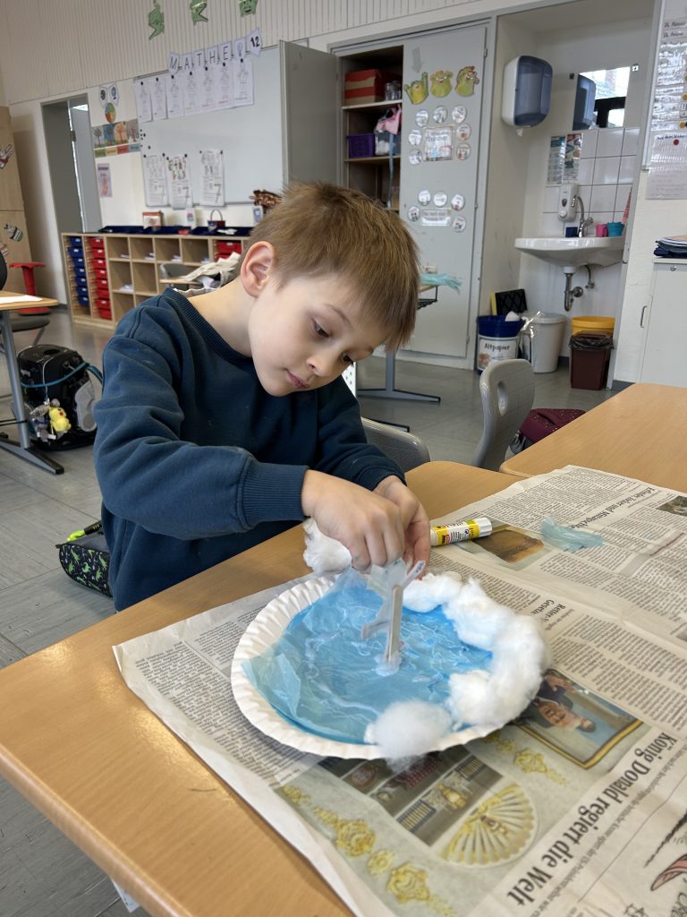 An verschiedenen Stationen wurden Baumanhänger aus Eierkartons oder Holz, Pinguine, Schneemänner und Winterhäuser gestaltet. Mit viel Geduld, Kreativität und Freude entstanden dabei zahlreiche wunderschöne Kunstwerke.